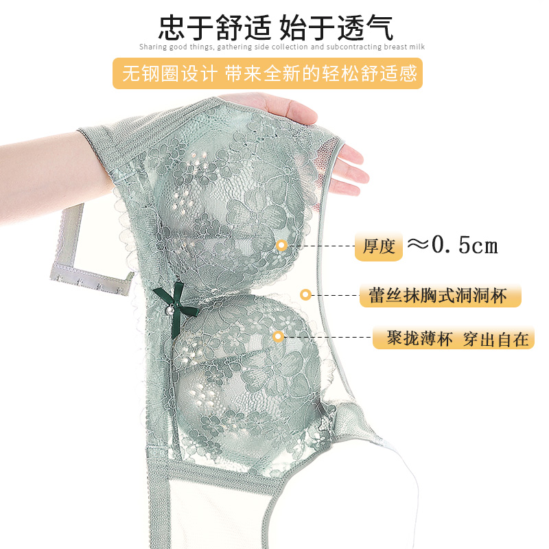 Thin-style large breasted underwear with small underwear for women without steel ring holes cup latex anti-sagging upper-trust bra Summer smears bra