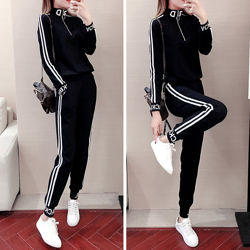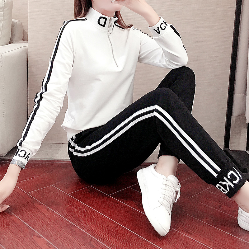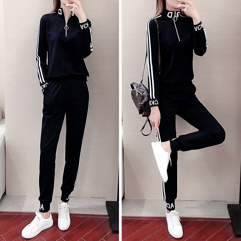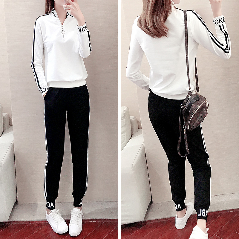Sports Casual Suit Women 2022 new spring and autumn Fashion foreign show Lean Collar Sportswear Running Suit Two Sets Tide