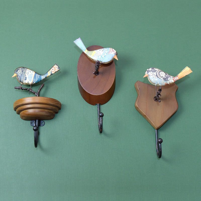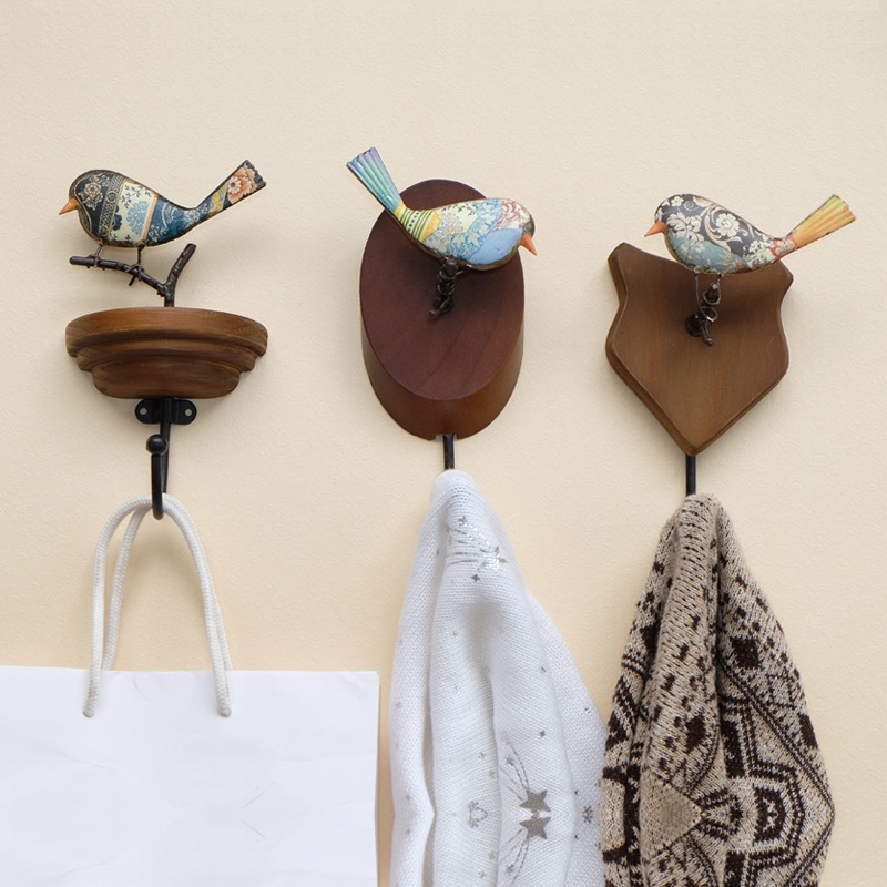 American Countryside Fields Garden Retro Solid Wood Small Bird Decoration Hook Creative Wall Hook Hanging Clothes Hook Clothing Hook