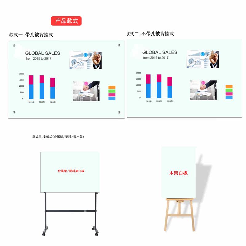 Tempered glass whiteboard hanging magnetic mobile small blackboard teaching and training writing board conference office display board