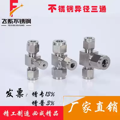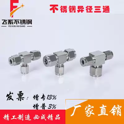 304 stainless steel ferrule joint reducing tee copper pipe joint reducing diameter stainless steel double ferrule type tee joint