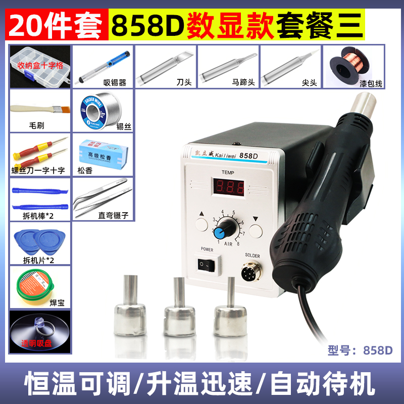 858D hot air gun constant temperature digital display electric soldering iron desoldering table two-in-one temperature regulation welding tool mobile phone electronic maintenance