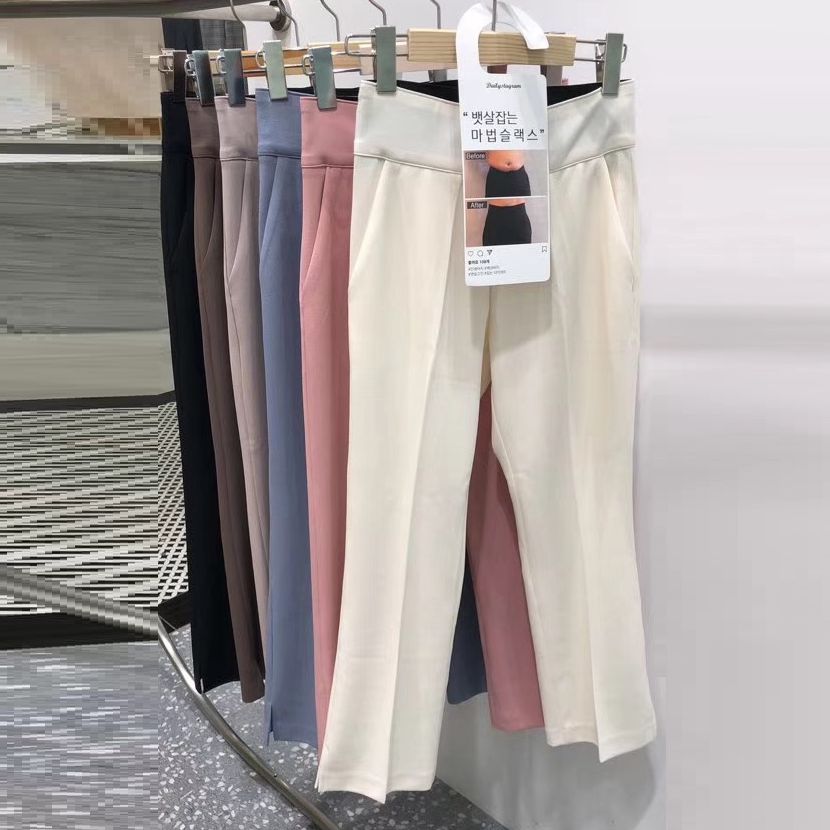 Outer side small open fork micro-LaMagic high waist beam belly pants invisible tightness waist and no buckle elastic force big size Korean spring