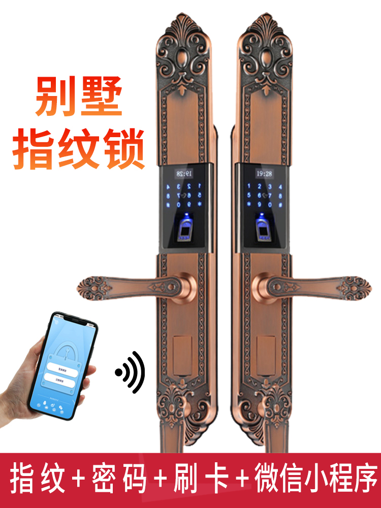 Yinchi fingerprint lock high-end villa double door fingerprint code lock European retro door lock smart lock electronic lock