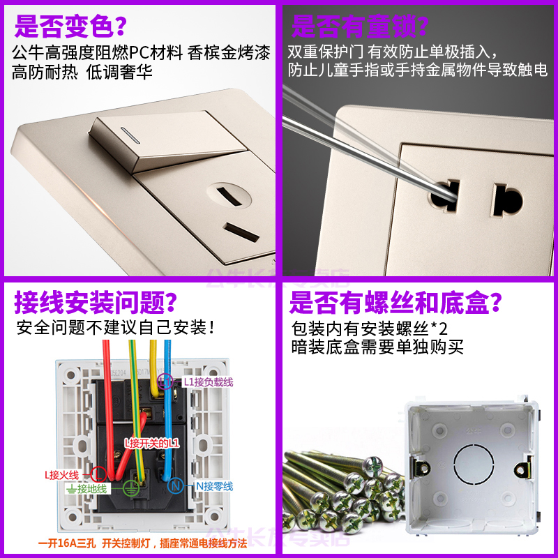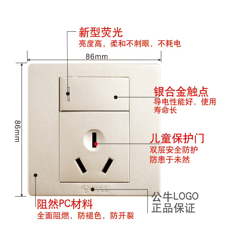 Bull open 3 holes 16a Air conditioning special socket High power 16 An triple eye electric water heater skewer seat with switch