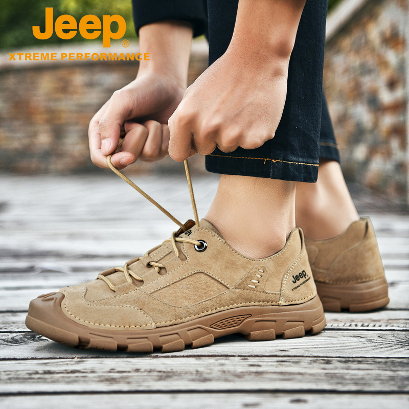 Jeep Gip Mountaineering Shoes Men Winter Waterproof Non-slip Outdoor Casual Shoes Wear leather sport hiking shoes