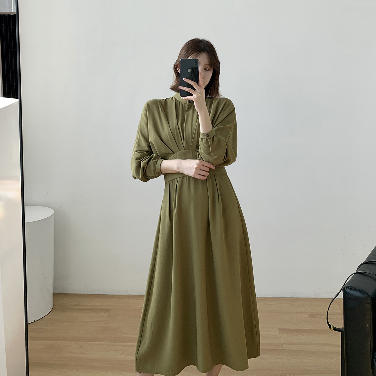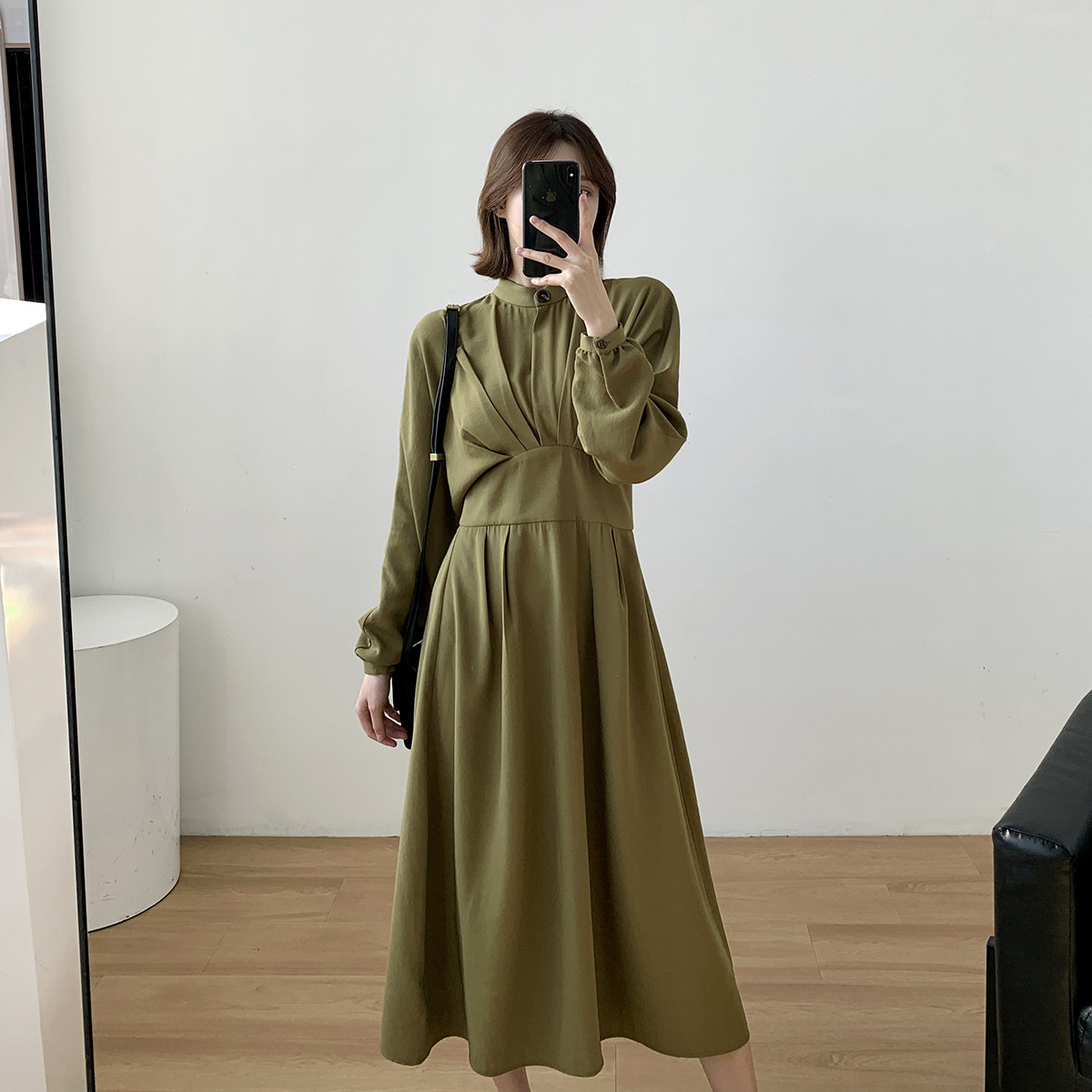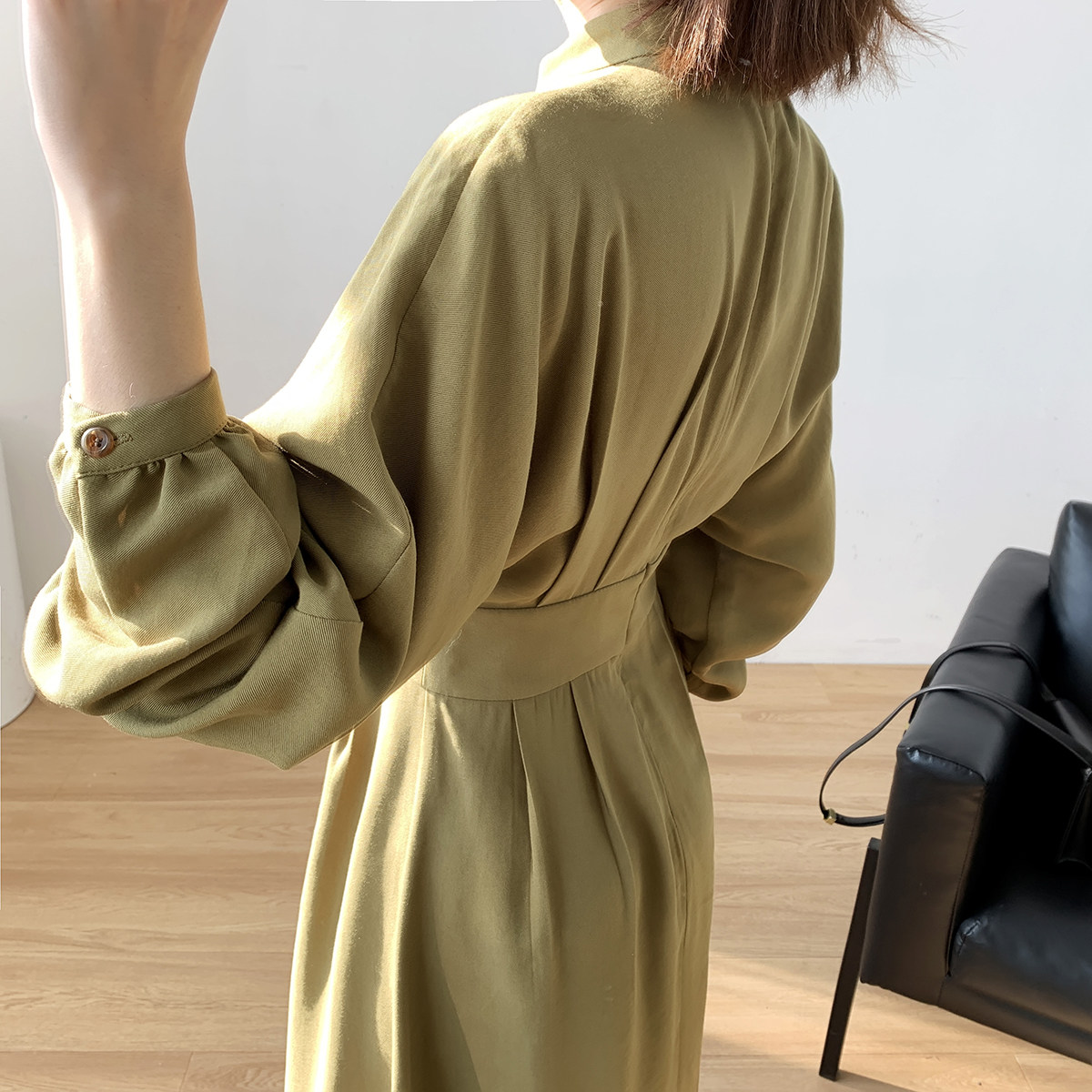 Goo Customize 2022 Women Fall New Knee Medium Long Version Foreign Dress 1 4 Inch Sleeve Wrench Cuff Fashion Temperament Cashew Slim Fit
