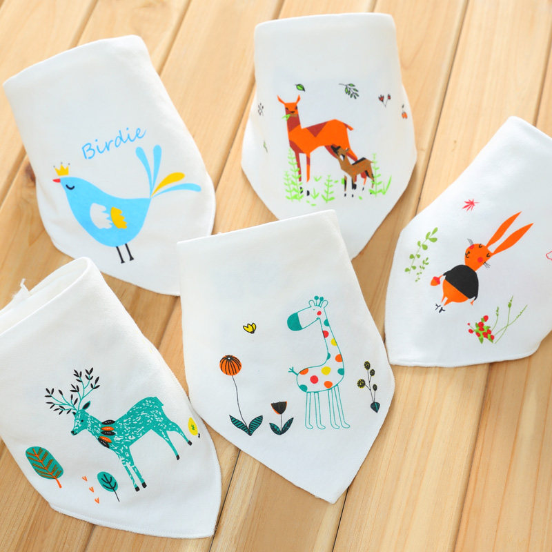 Newborn double-layer cotton printed triangle scarf saliva towel four seasons 5 pack