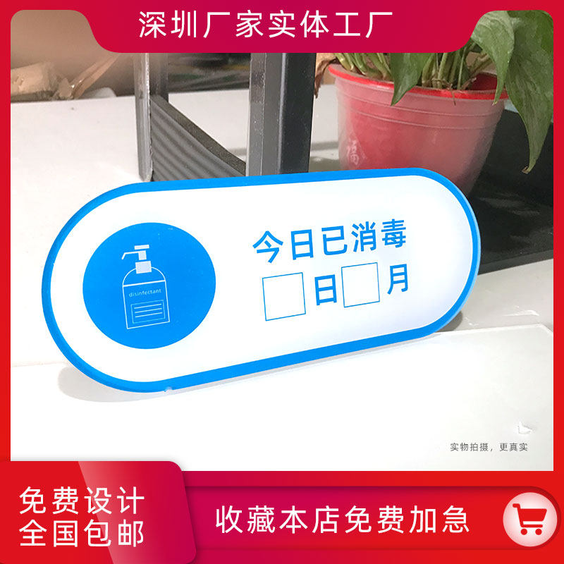 Today has been disinfected warm reminder card Acrylic mother and baby shop hotel daily handwritten wipe-down logo sticker