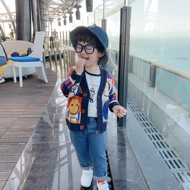 Pig little evil Boys sweater cardigan children baby boy coat autumn winter knit vintage baby autumn dress spring and autumn