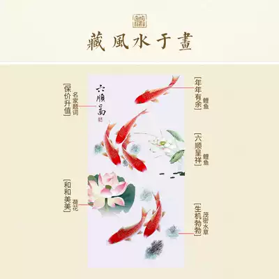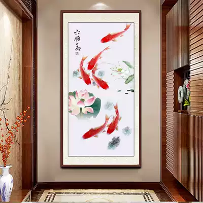 Dai Yu Xuan Guan six fish picture hand-painted Chinese painting meticulous painting decoration painting into the house corridor hanging painting vertical picture