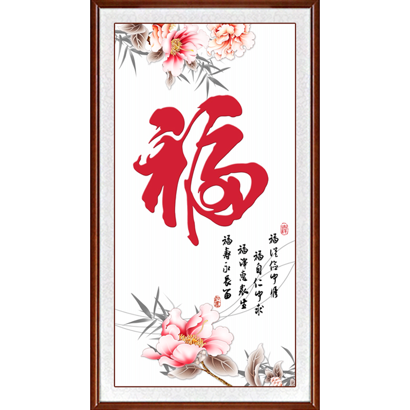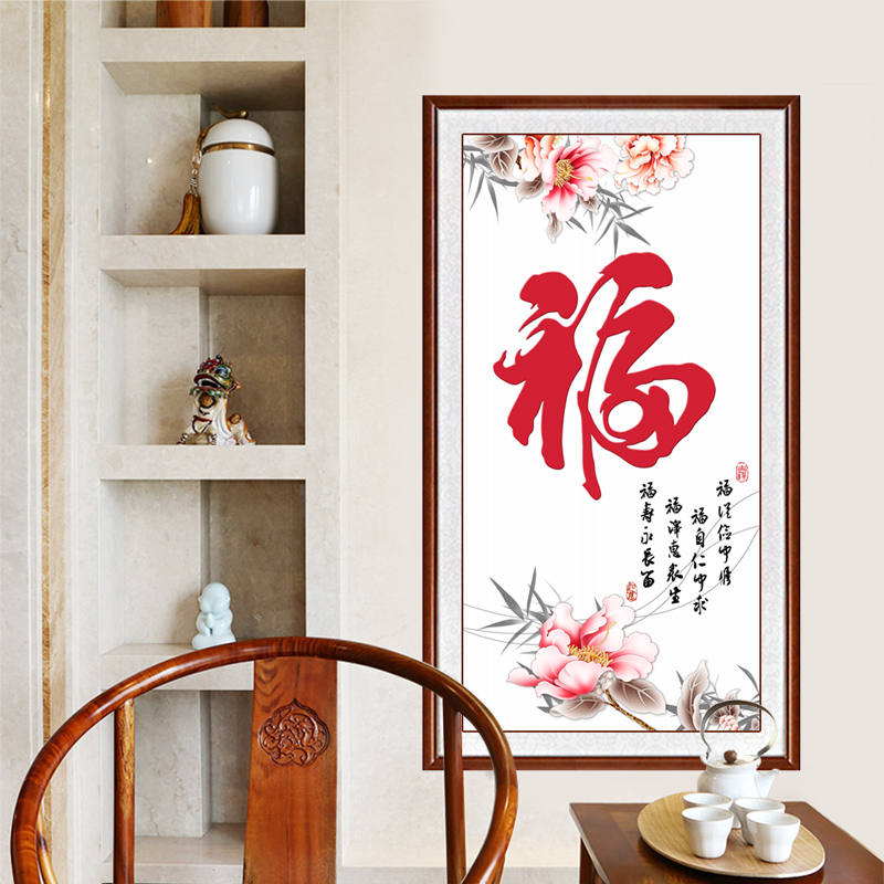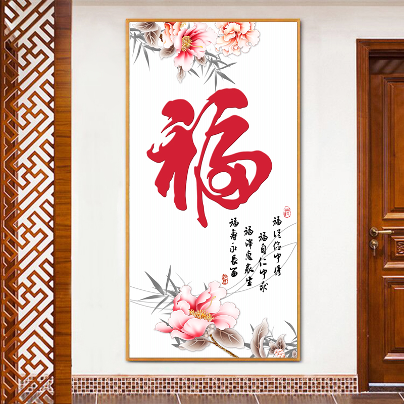 Yulanfu cross stitch 2021 new embroidery vertical version of the entrance living room blessing embroidery classical Chinese style thread embroidery simple