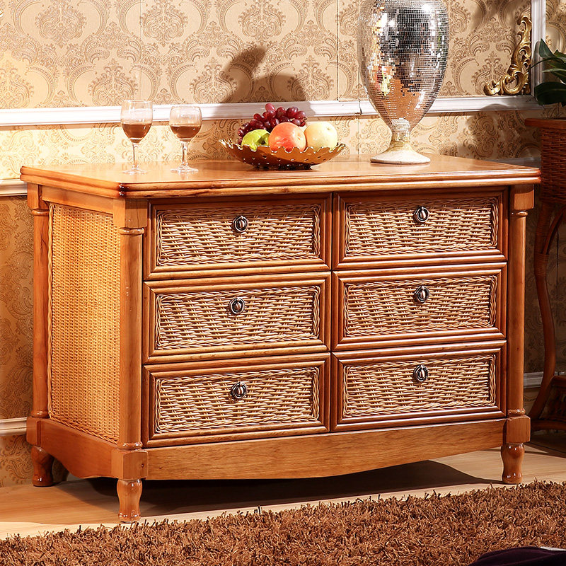 Rattan six-drawer cabinet Rattan six-drawer cabinet Environmental protection storage cabinet rattan bedroom furniture rattan wood multi-drawer cabinet