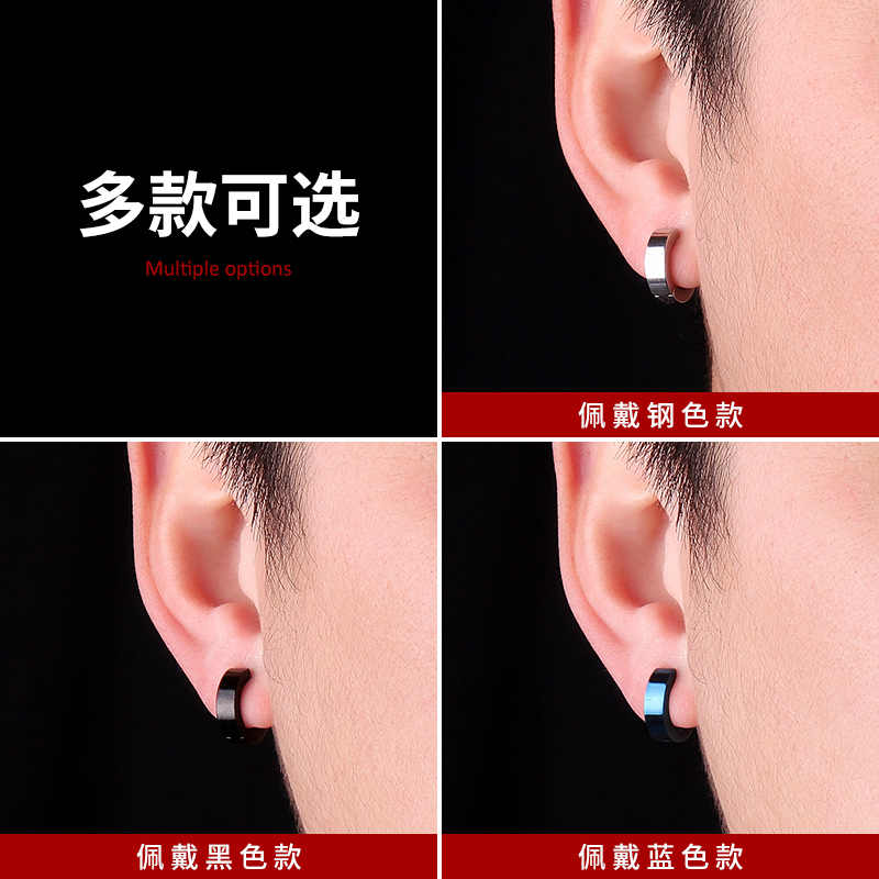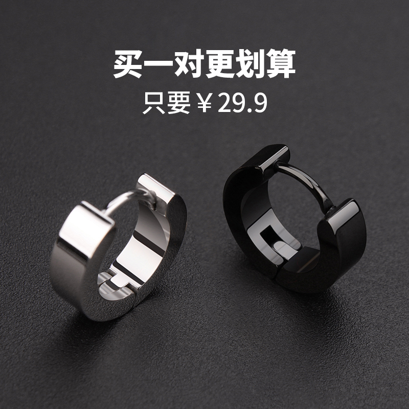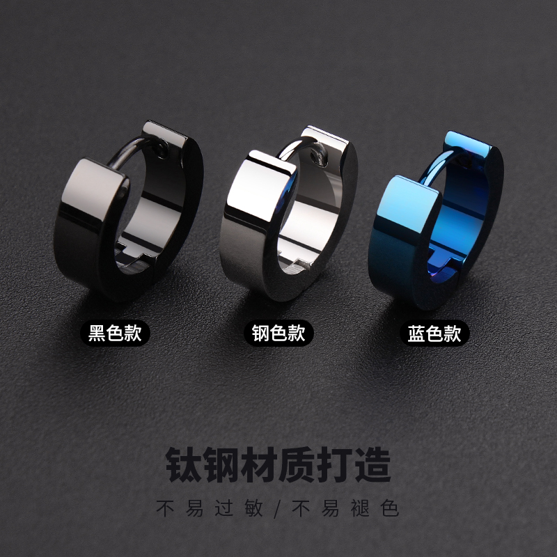 Tide products fashion titanium steel ear needle men not easy allergy ear button earrings earrings earrings Japanese and Korean trendy men black ear jewelry