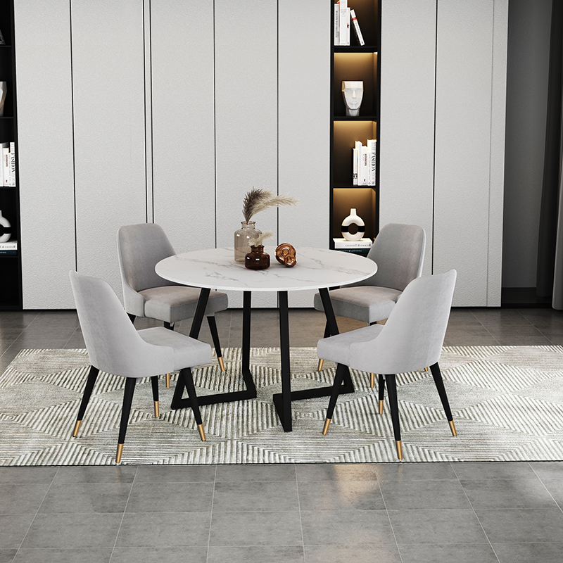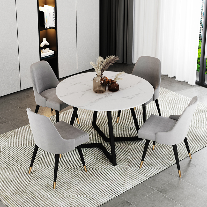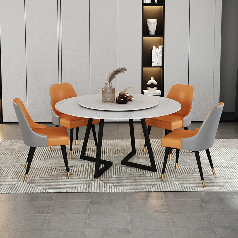 Italian Style Light Lavish Rockboard Table Combined Marble Turntable Modern Minimalist Home Round Table Chairs Small Family Dining Table