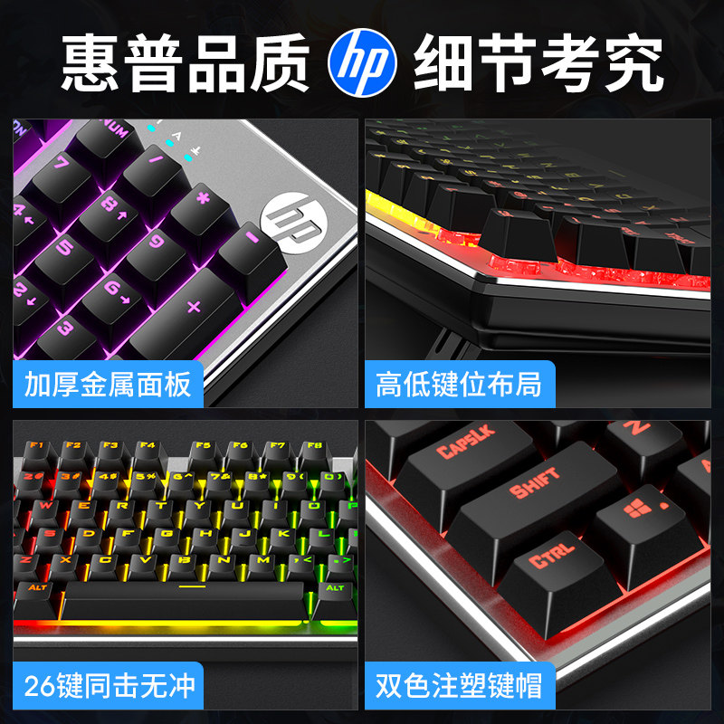 (Official authorized store) HP HP wired mechanical touch keyboard desktop computer laptop external office e-sports game special board typing mute keyboard mouse set