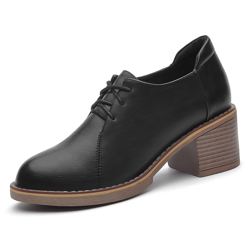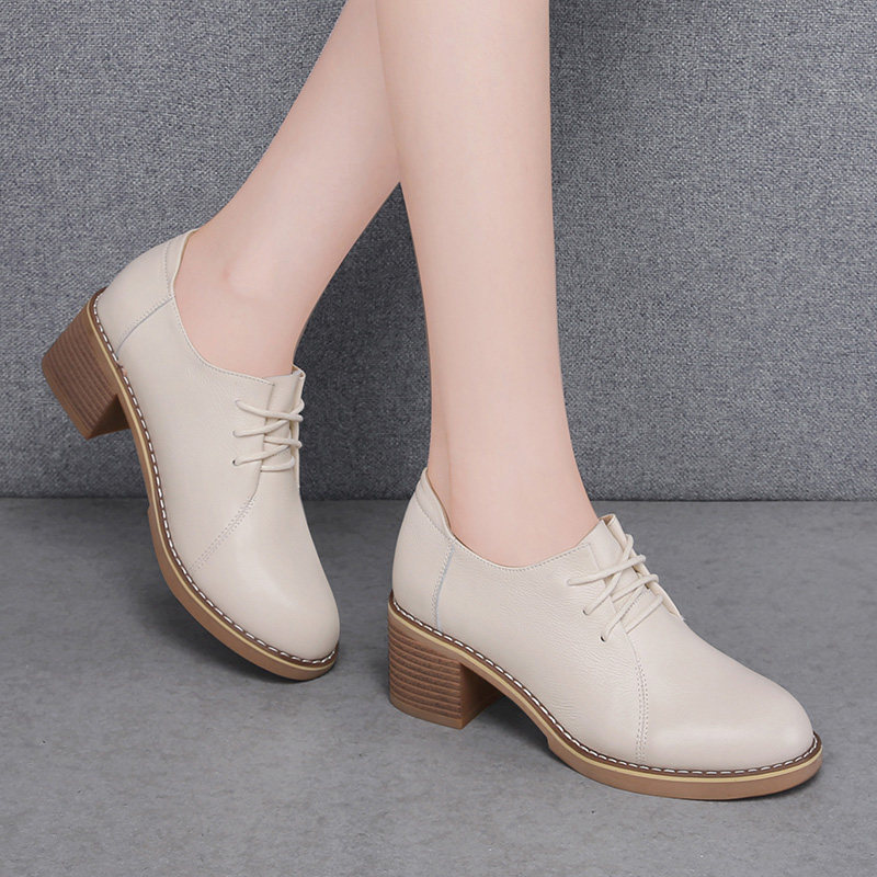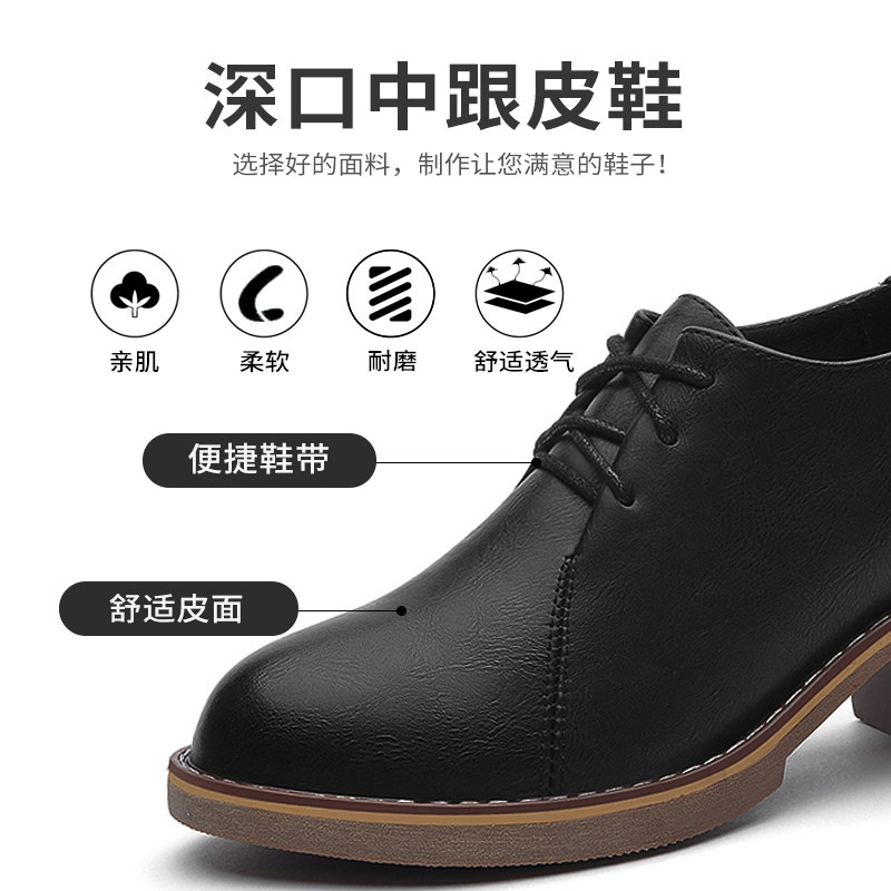 Leather Shoes Women Inglén Women Shoes Genuine Leather 2022 New Summer Deep Mouth Single Shoes Heel Black To Work Heel High Heel Shoes