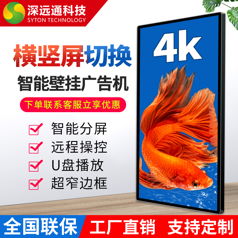 Wall-mounted advertising machine shopping mall milk tea shop elevator ultra-thin smart 4K Android touch HD network LCD screen player horizontal and vertical hanging TV integrated 43 55 65 75 100 inch