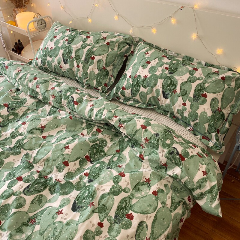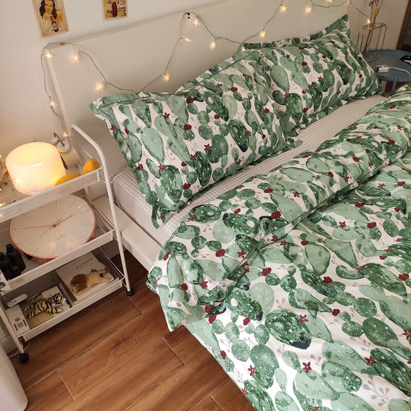 Large Sand Desert Pure Cotton Four Pieces Nordic Green Cacti Flowers Fresh Bed Linen bed Quilt Cover Bed