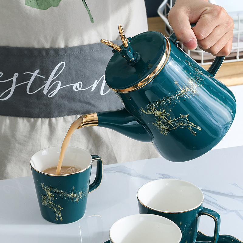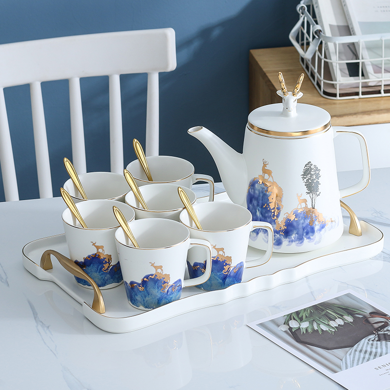 Light Extravagant Nordic Tea Cup Pot Suit Home Living Room Ceramic Drinking Water Mug Minima Tea Cold Kettle Tea Cup Water