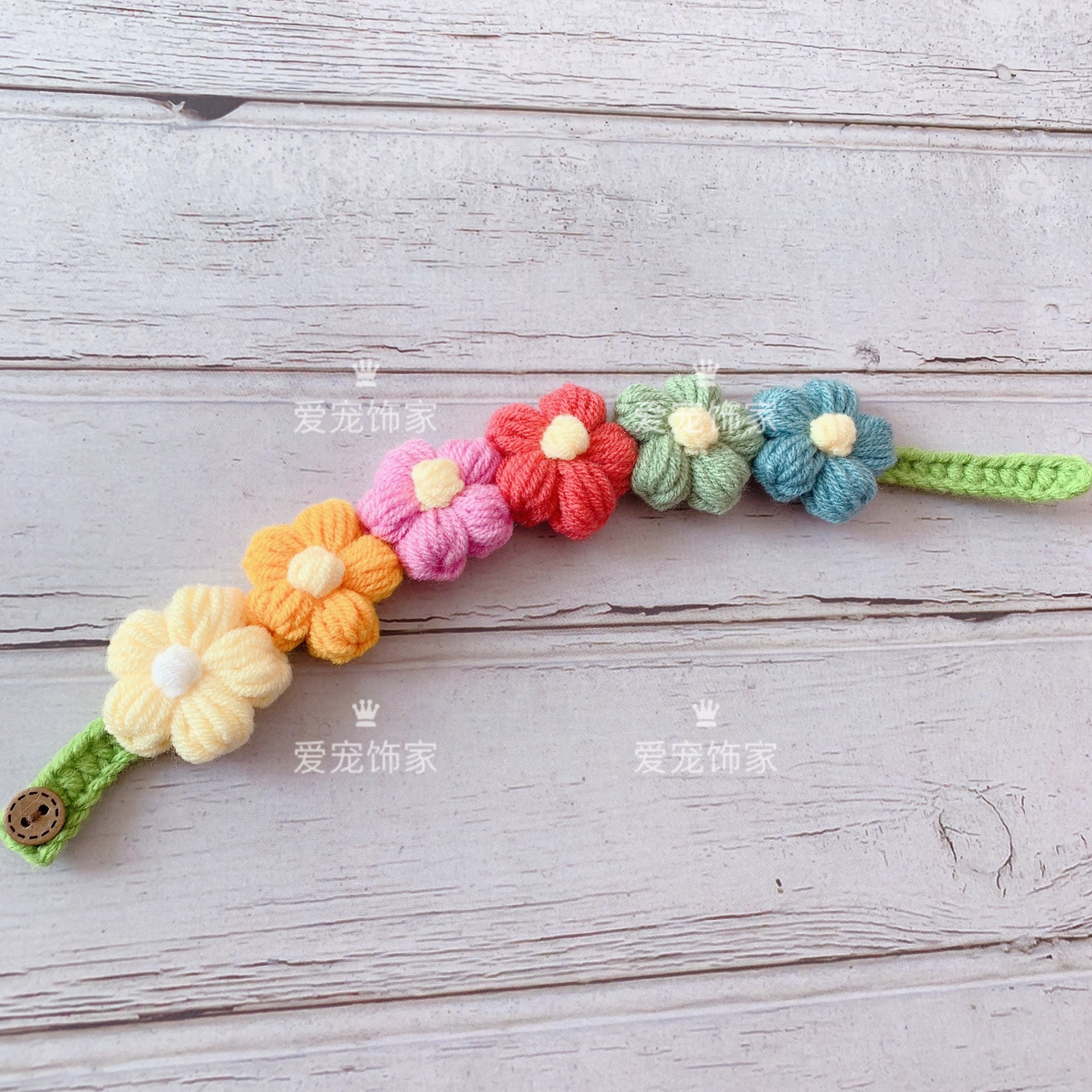 Hand-woven cat collar cute flower dog collar candy color colorful neck ring photo road wool diy