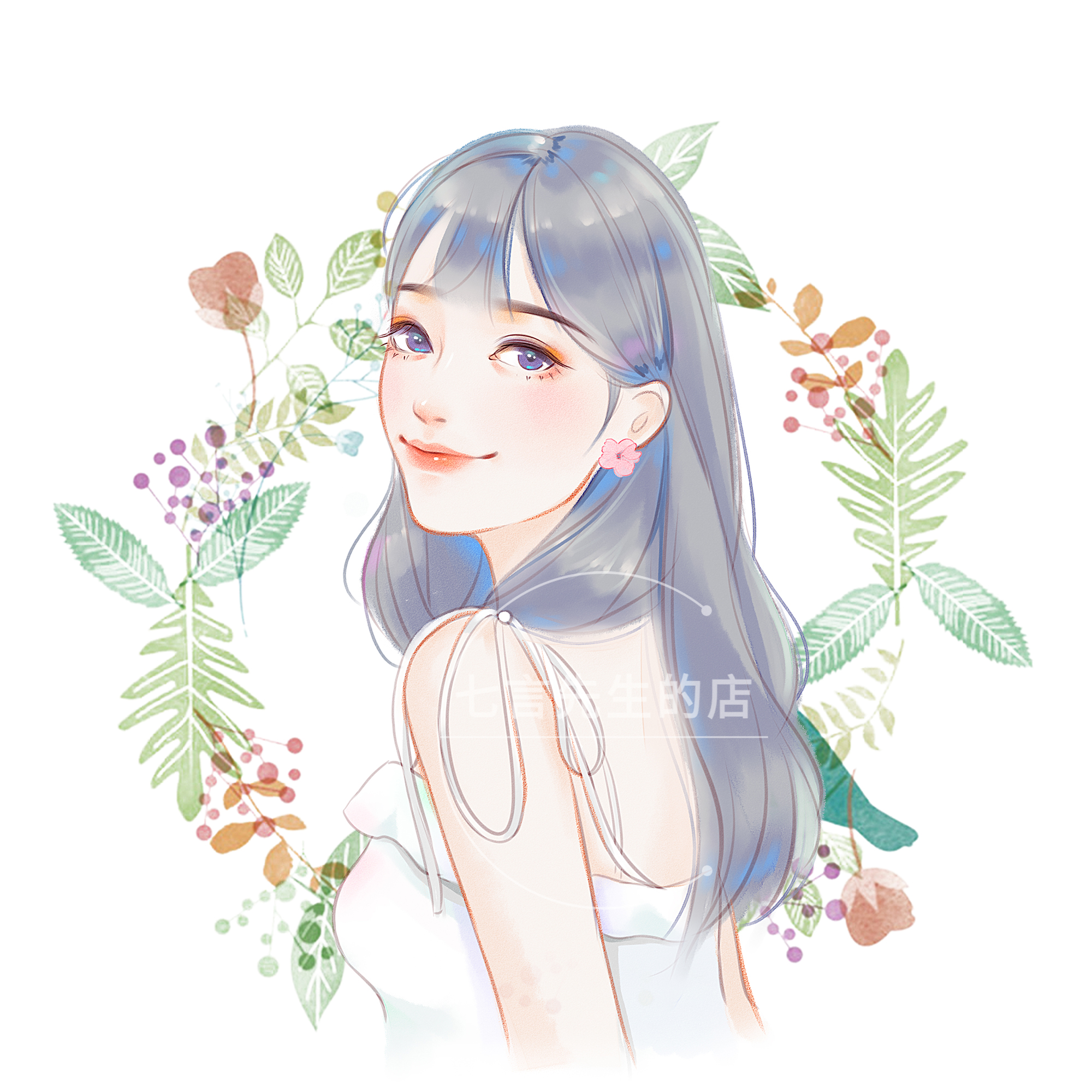 High-end customised Mori Department watercolor live-action photo turned hand-painted portrait with fresh illustrations Portrait Board Plotter Lovers Presents