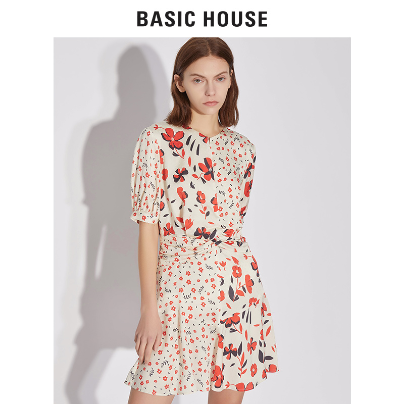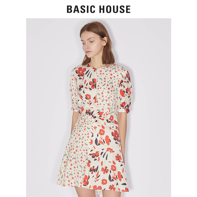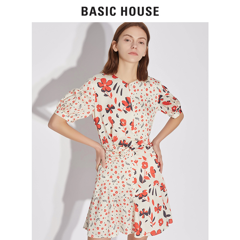 Basic House 100 good stores with summer fairy dress female orange print HUOP322B