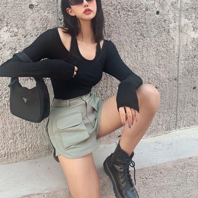 LIVIA frock shorts women's summer European and American ins handsome high waist thin curved split design casual shorts tide