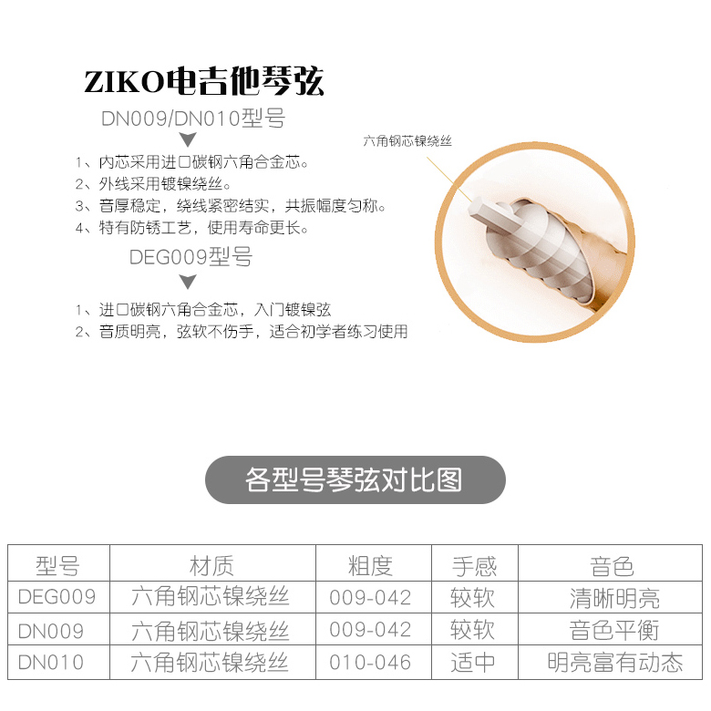 ZIKO Lieu DN Series Electric Guitar Strings Electric Guitar Strings strings Strings Nickel steel material 009010-Taobao