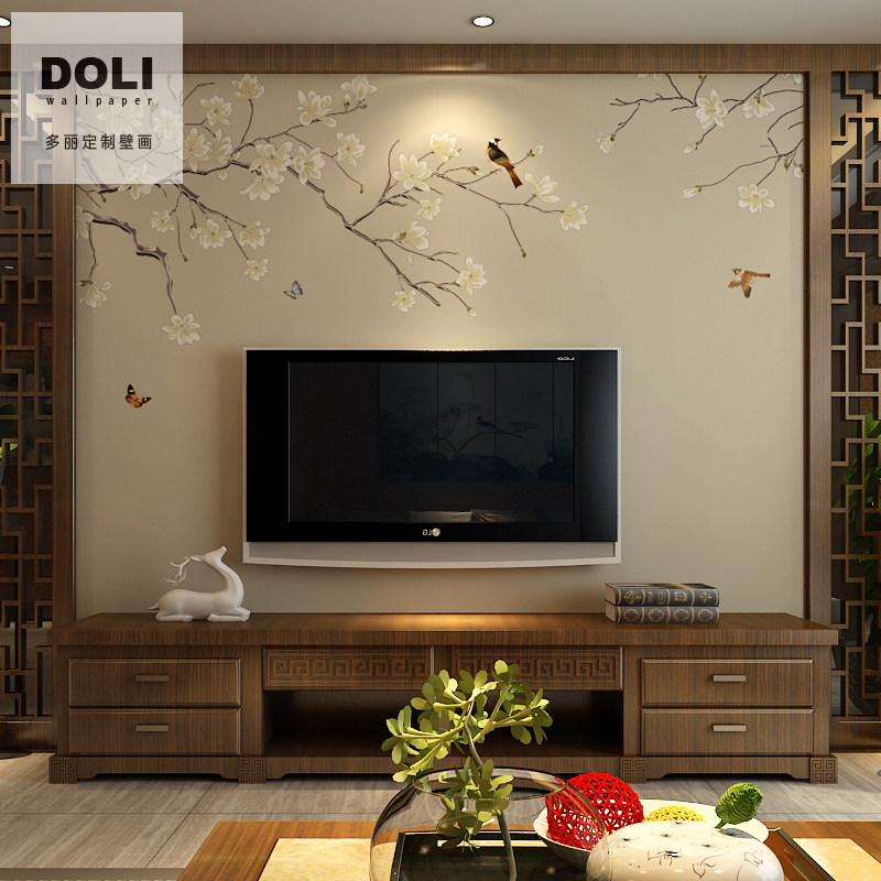 Living room TV background wall cloth Environmental protection non-woven wall cloth Neoclassical Chinese landscape painting landscape painting 049
