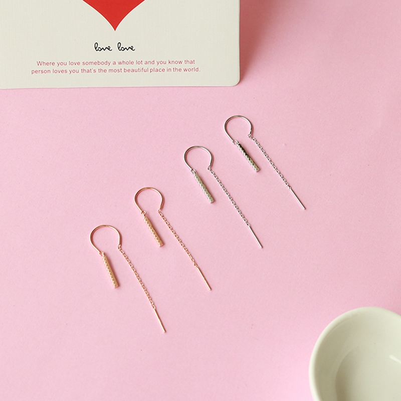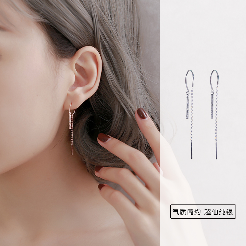 S925 pure silver gold secretary Tongan earrings female South Korean lukewarm wind 100 Lapped Temperament Personality Long version of the brief Ear Necklace