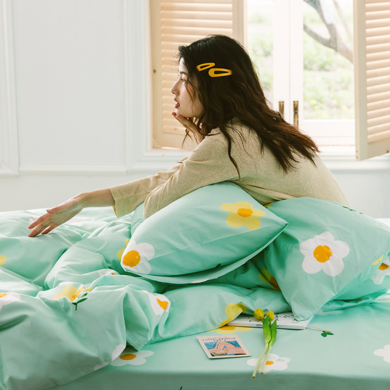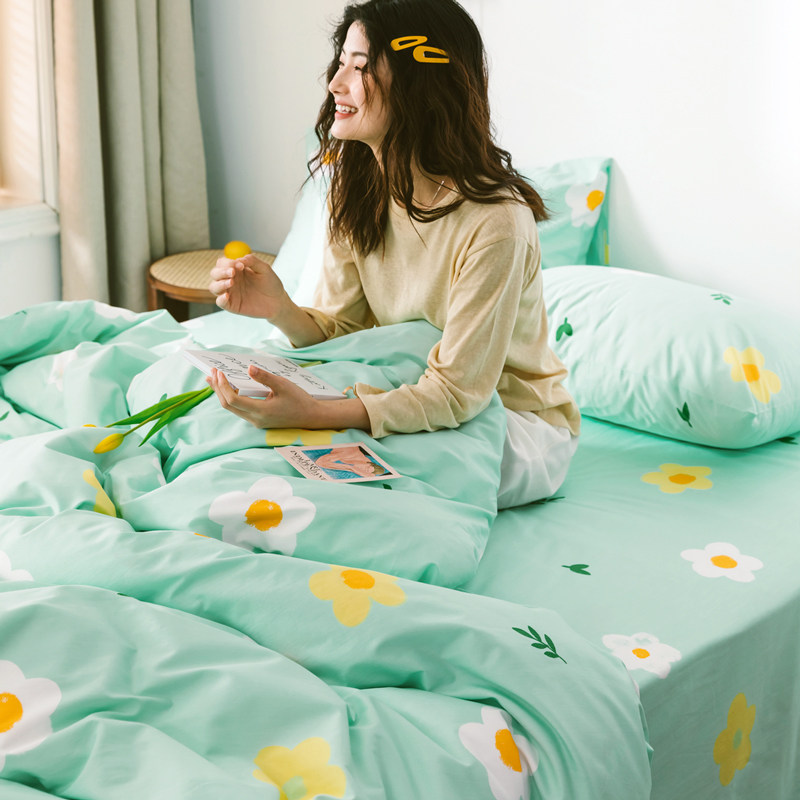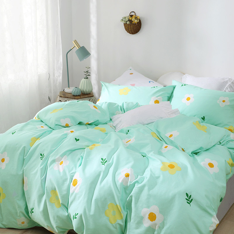 More love new four-piece cotton bed sheet duvet cover Bedding Girl heart mint micro flower T
