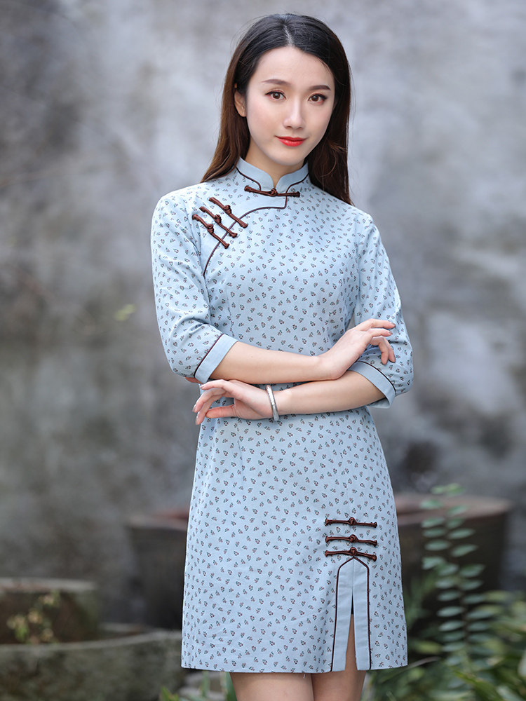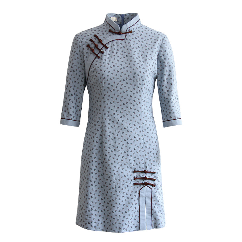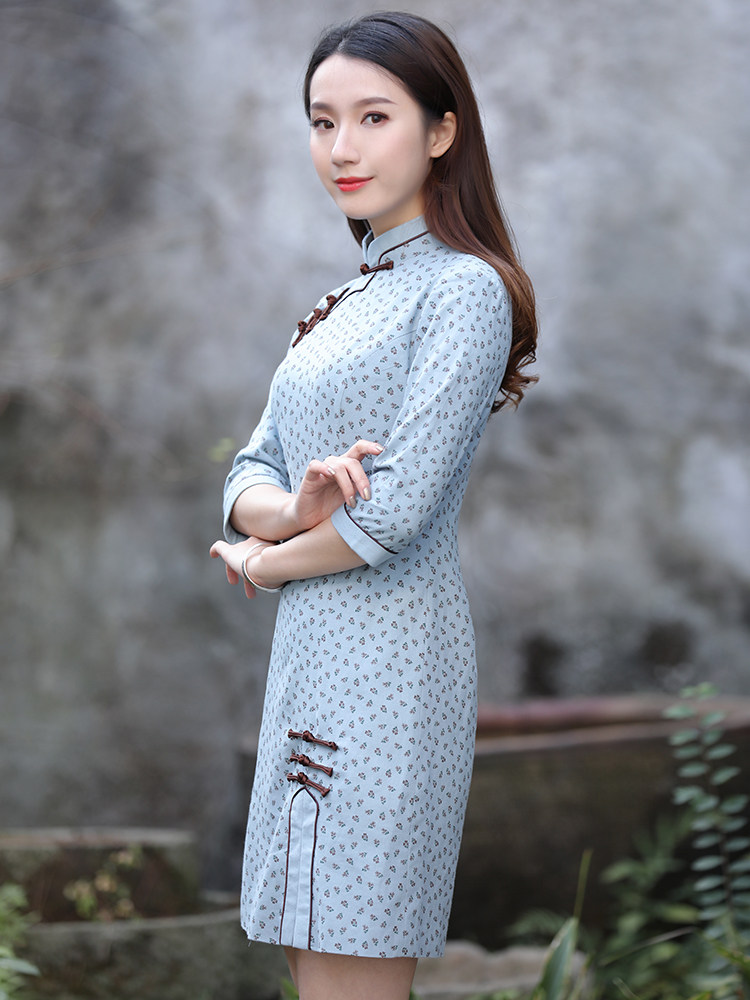 Junya qipao Improved version of the dress French style retro young style Traditional cotton numb female style Wind retro women's clothes