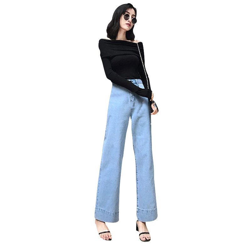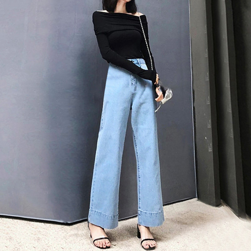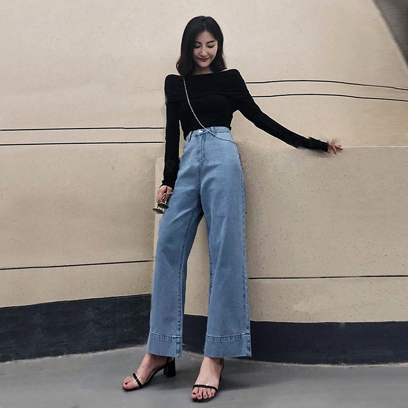 2022 New Spring Autumn Light Blue Wide Leg Jeans for Women High Waist Hanging Loose Slim Straight Mop Pants
