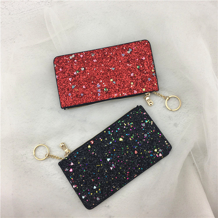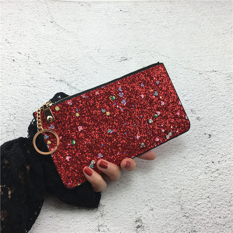2022 new retro sequin mobile phone bag ultra-thin small coin purse women's long card holder simple zipper key case