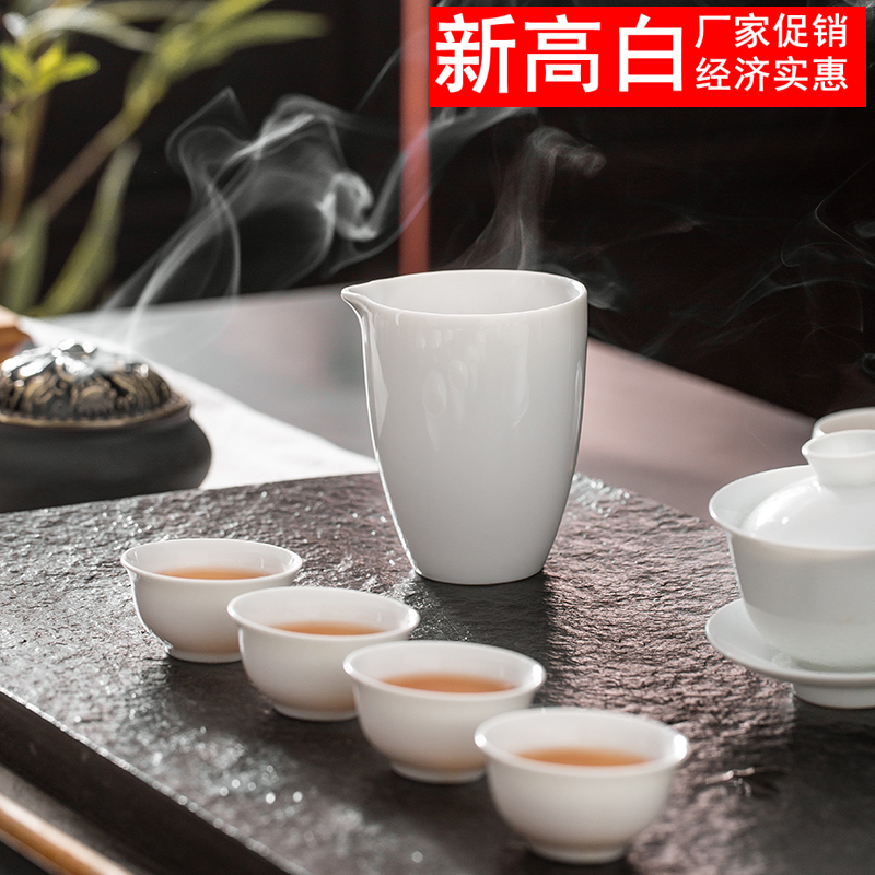 Jisen new high white cover bowl tea cup tea plate size tea bowl Chinese style pure white bubble ceramic Chaoshan kung fu tea set