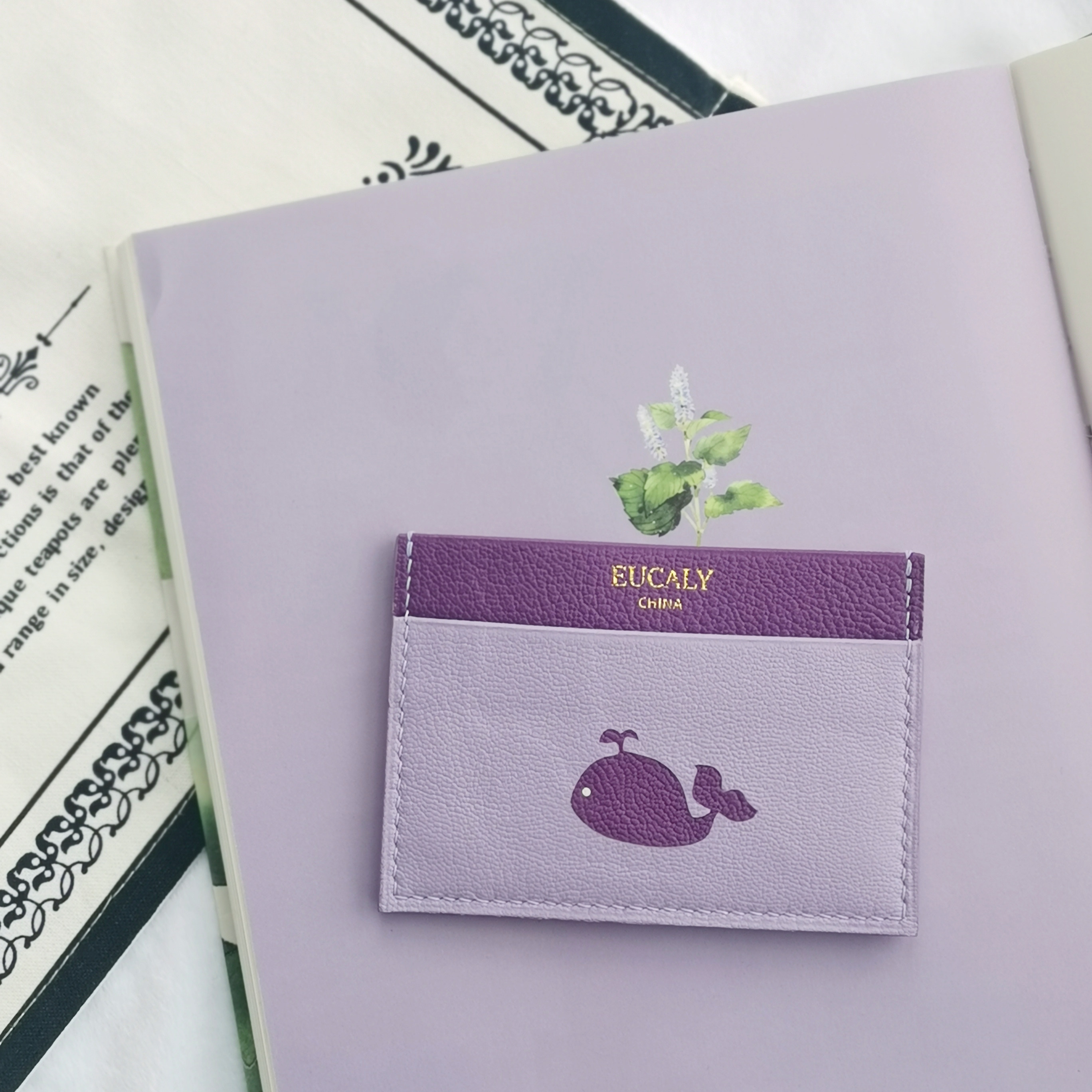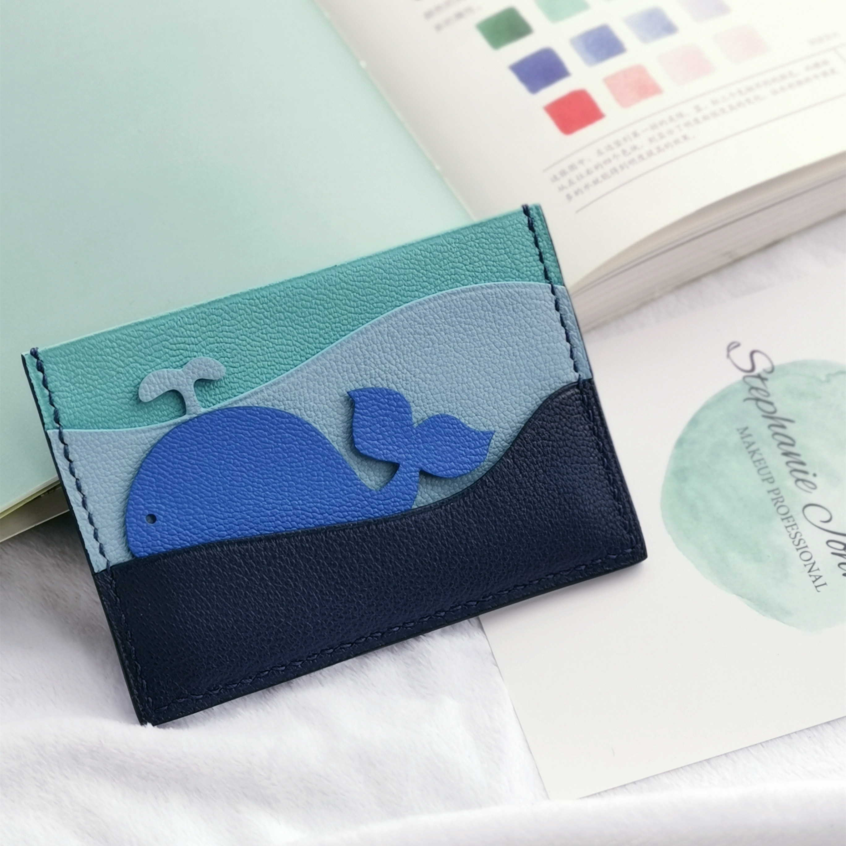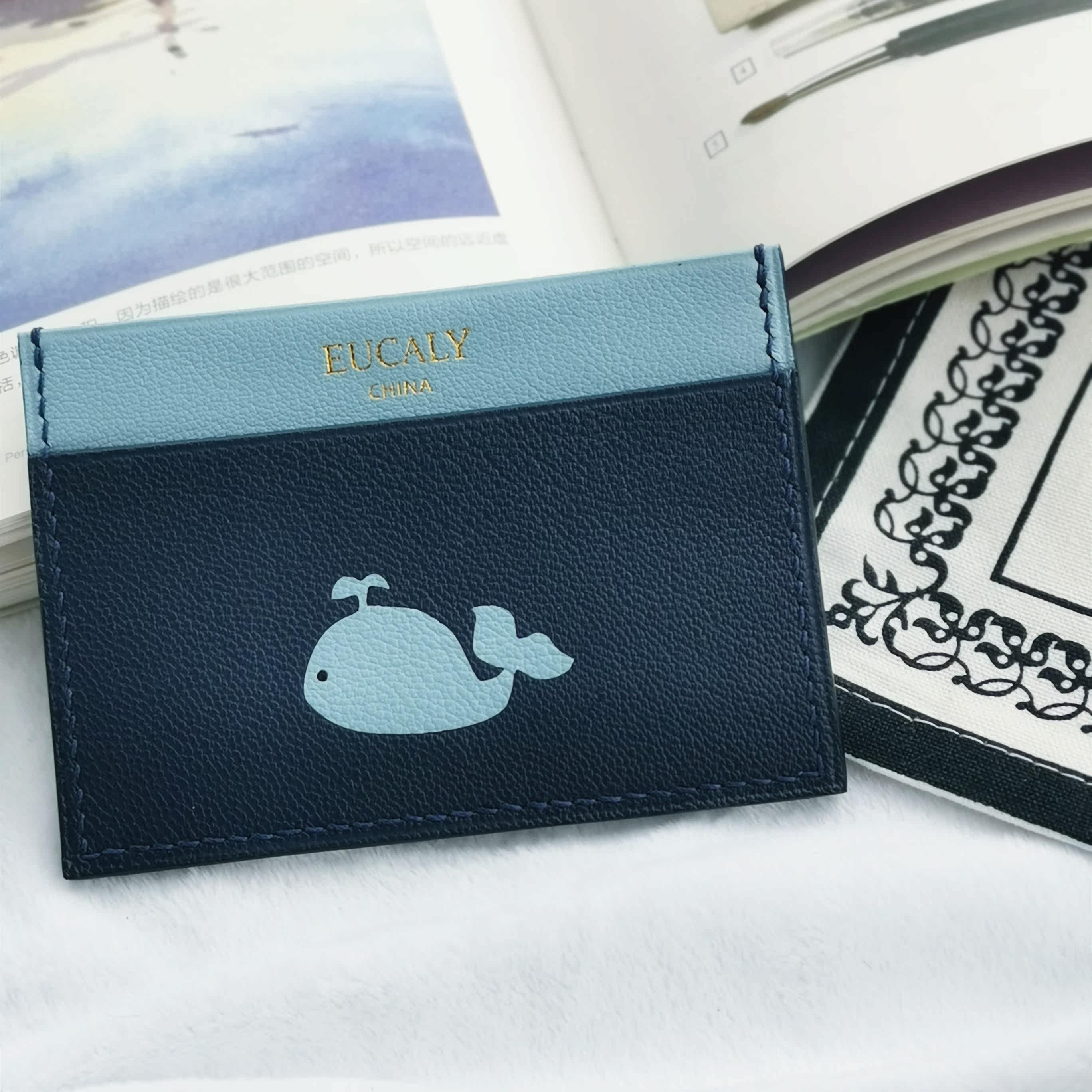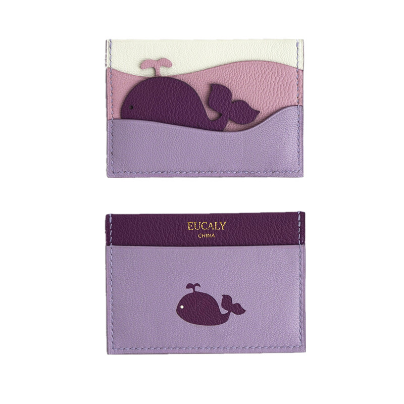 (Home grass and wood handmade) original handmade genuine leather card bag whale niche design custom creative