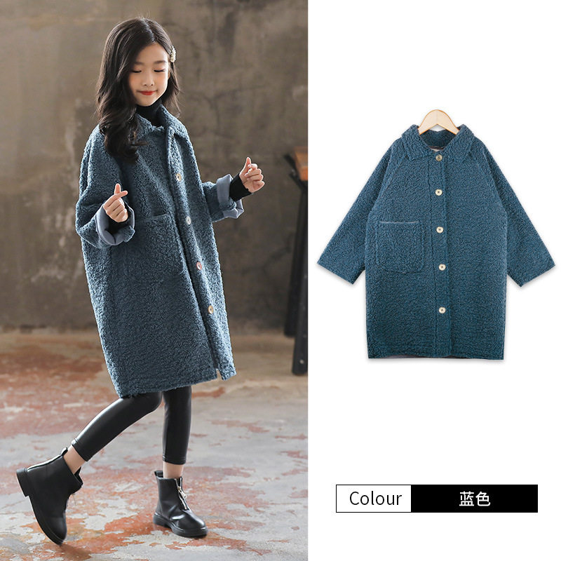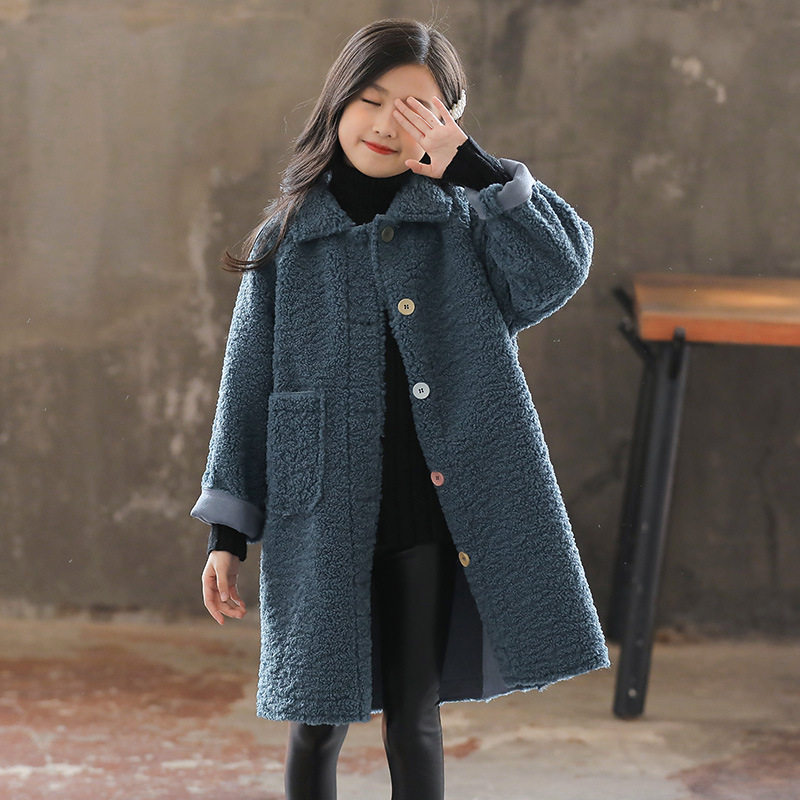 Girls' lamb wool coat spring trendy style Internet celebrity medium and long style foreign style fur one medium and big children's buckskin velvet