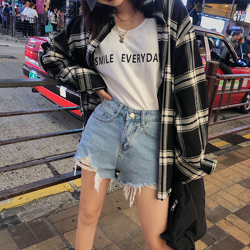 Song Zhengen 2021 new high-waisted denim shorts female tide Korean version of the retro fur-edged student loose-legged hot pants