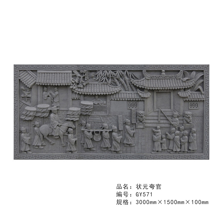 Ancient town street scene large brick carving Chinese style Wall Wall Courtyard Relief Shadow Back Wall 3*1.5m Flowers Bloom Rich