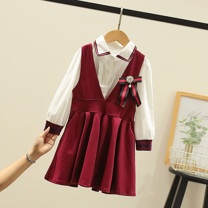 Lashabel Children's Gas Kids in the Large Girl 2022 Casual Spring Dress Shirt Shirt Two Pieces