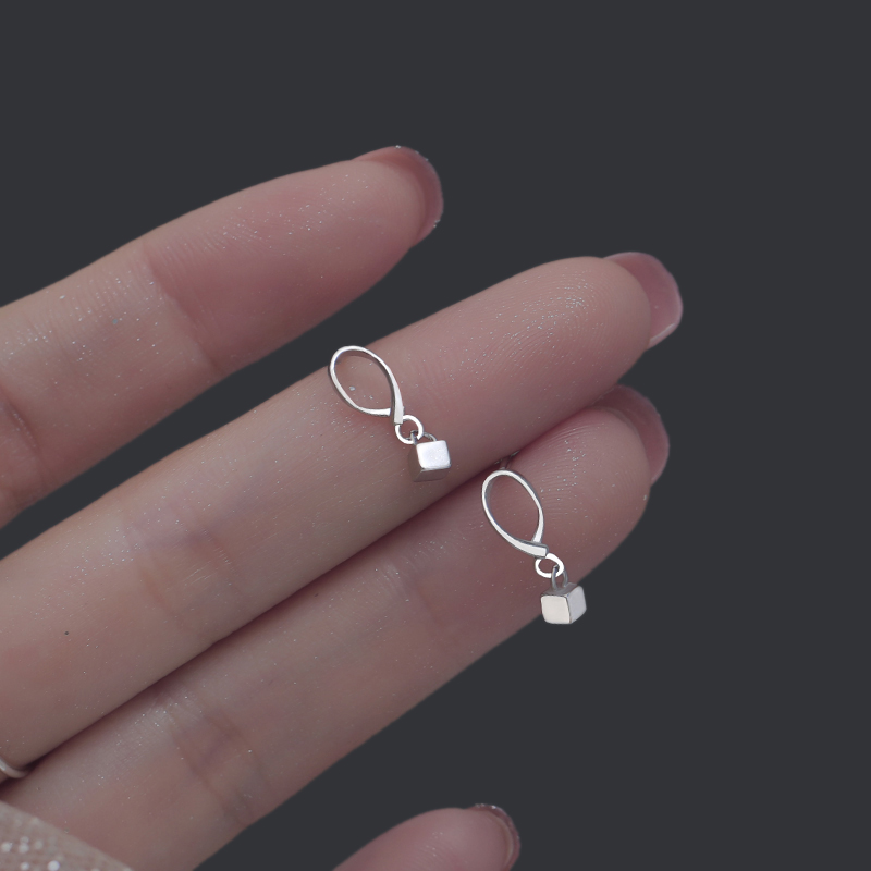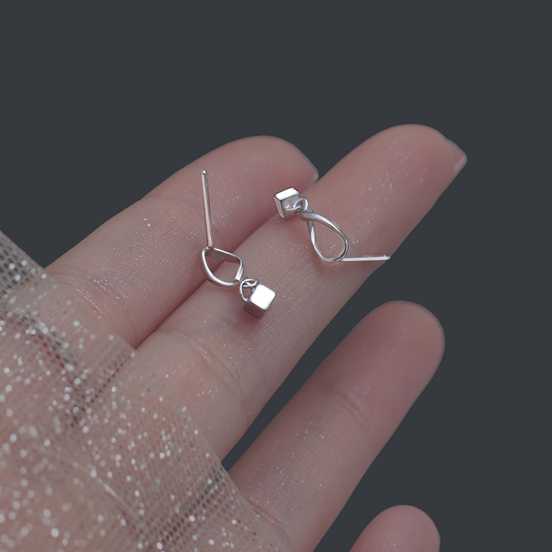 S925 S925 Squirrel Wave Square ear nails unique temperament simple cube small earring cold wind