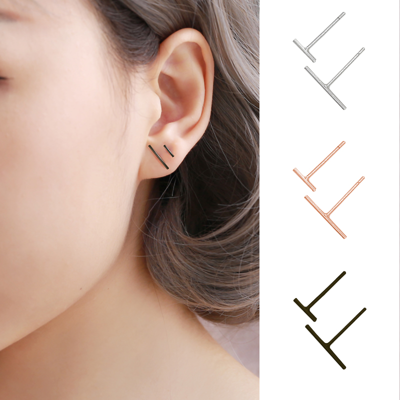 S925 sterling silver one word stick ear stick ear needle for men and women Korean temperament personality geometric simple earrings cold wind