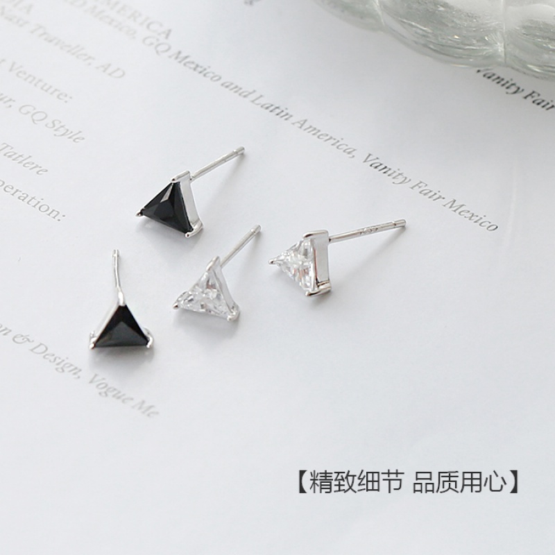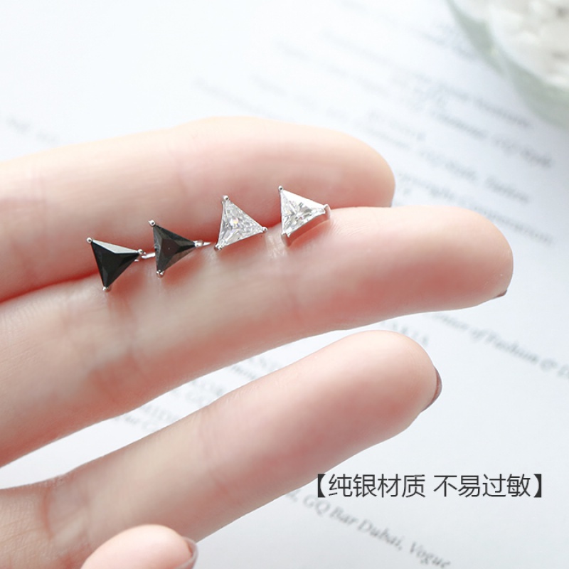 S925 Pure Silver Triangular Geometric Diamond Earrings Female Korea Black Zircon Personality Lukewarm Ethos Earrings