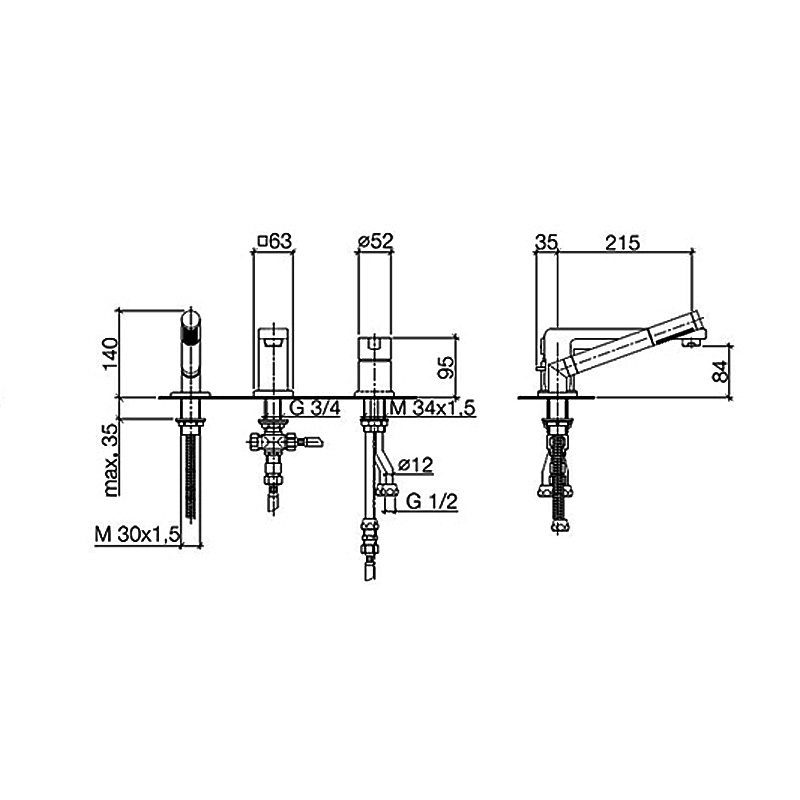 German imported Dornbracht contemporary 27312710-00 LULU series three-hole bathtub faucet