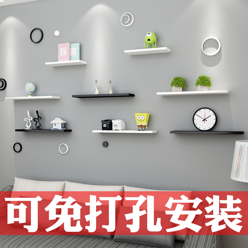 Wall-mounted shelve wall Living room TV Background wall Wall Wall Partition Free bedroom Bedroom Creative Plaid