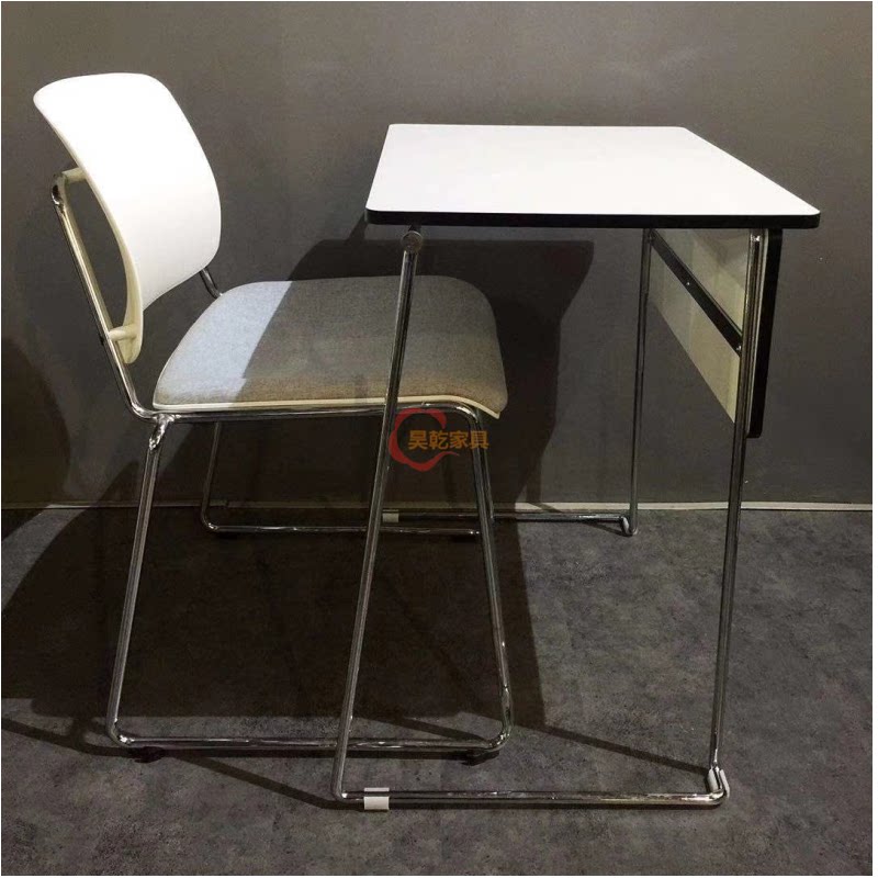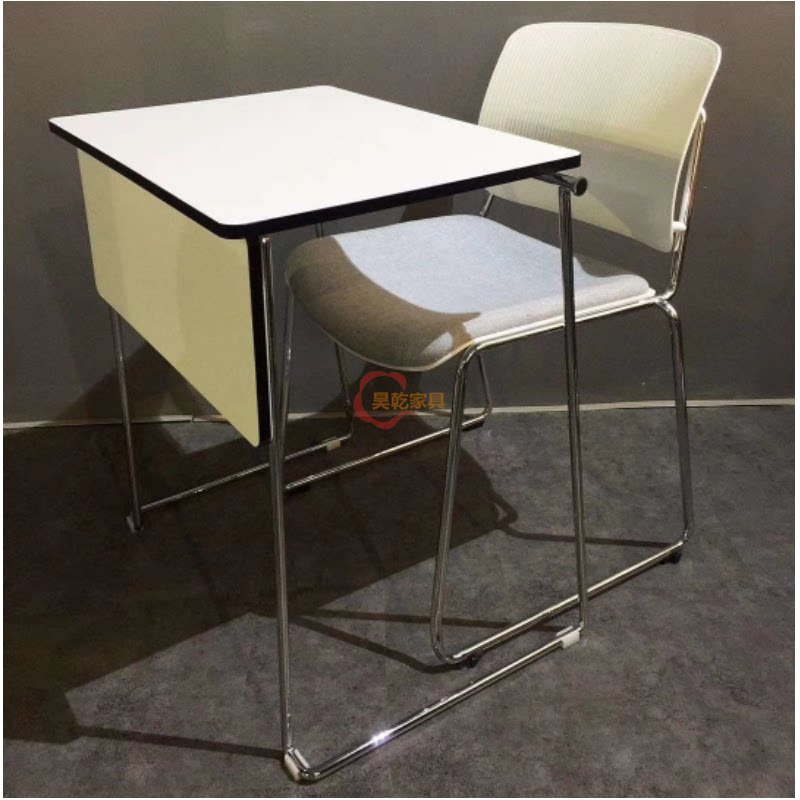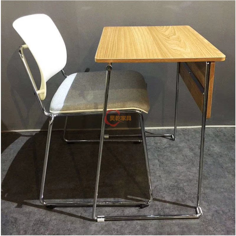 Fashion wood grain color single desk and chair supporting educational institution staff training listening study table mobile conference table