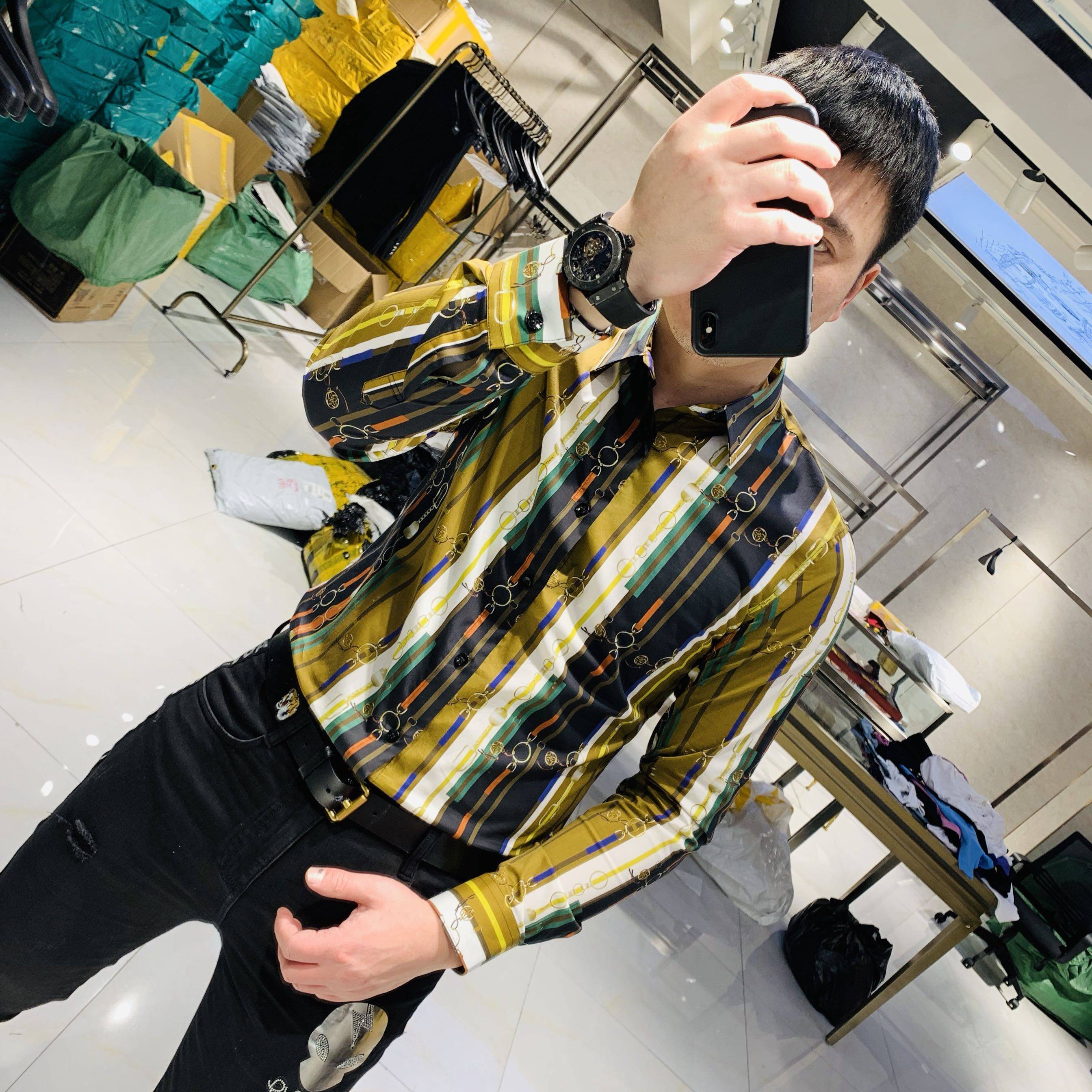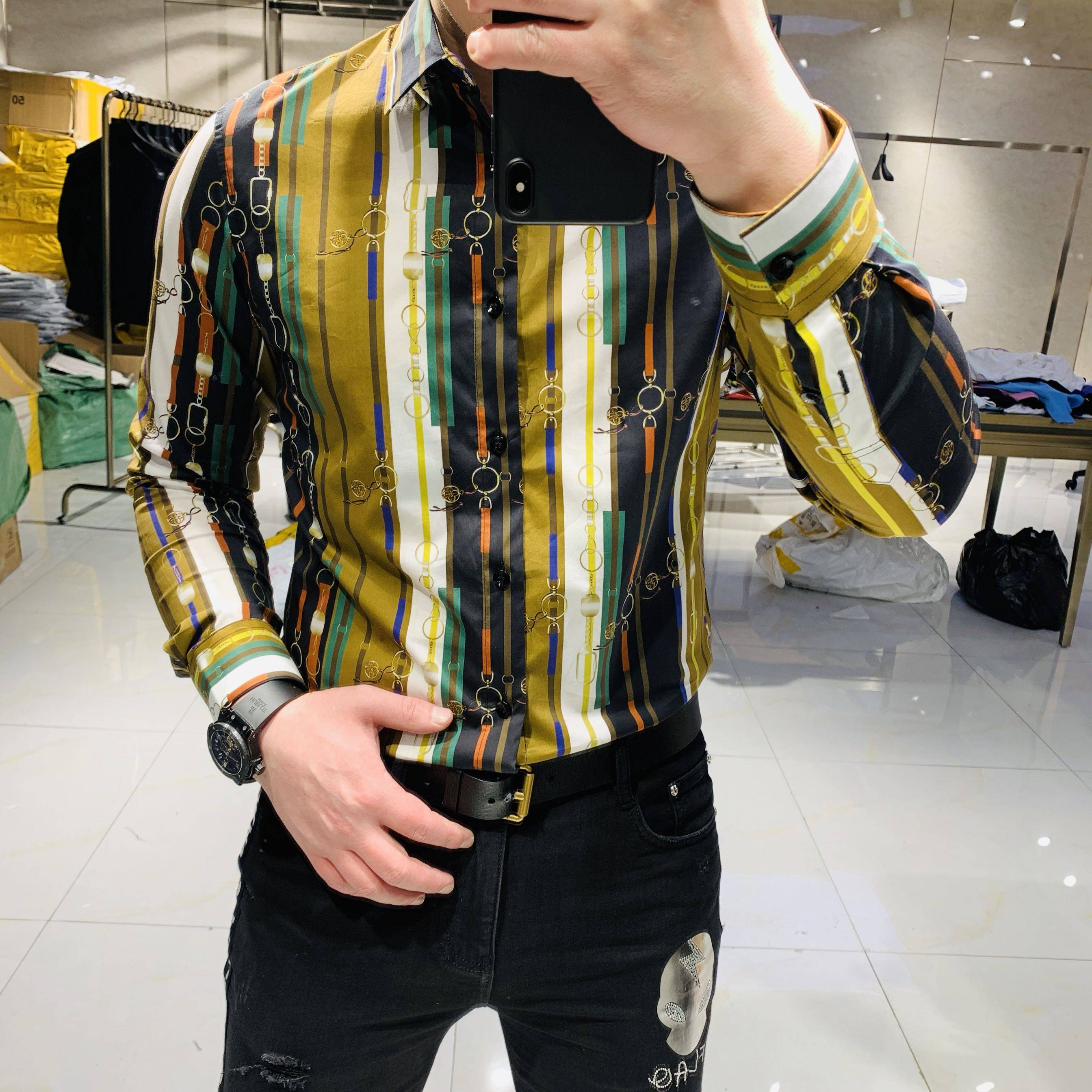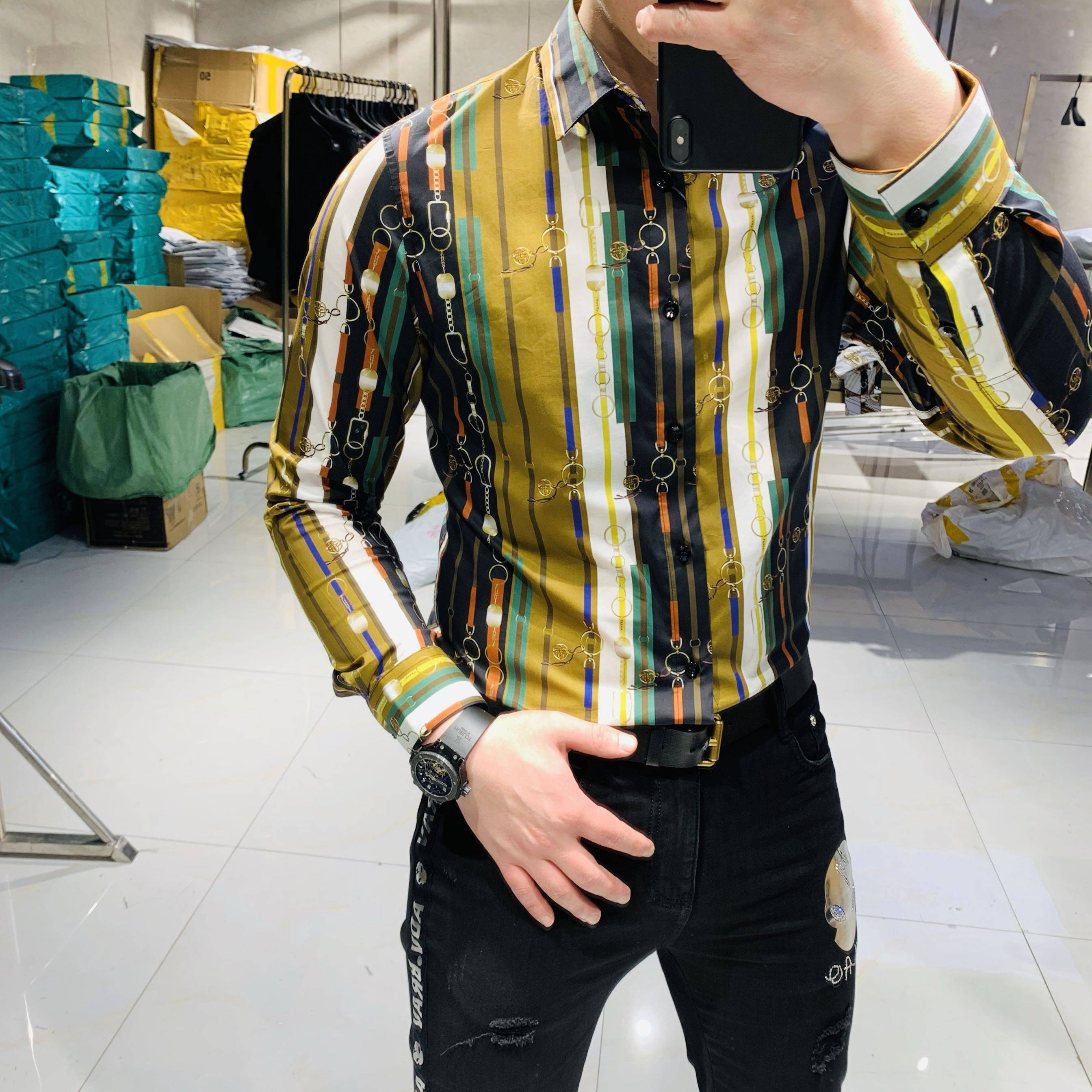 Digeni 2020 spring men's new European and American trend fashion slim long-sleeved shirt men's business casual shirt