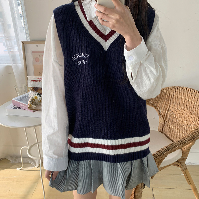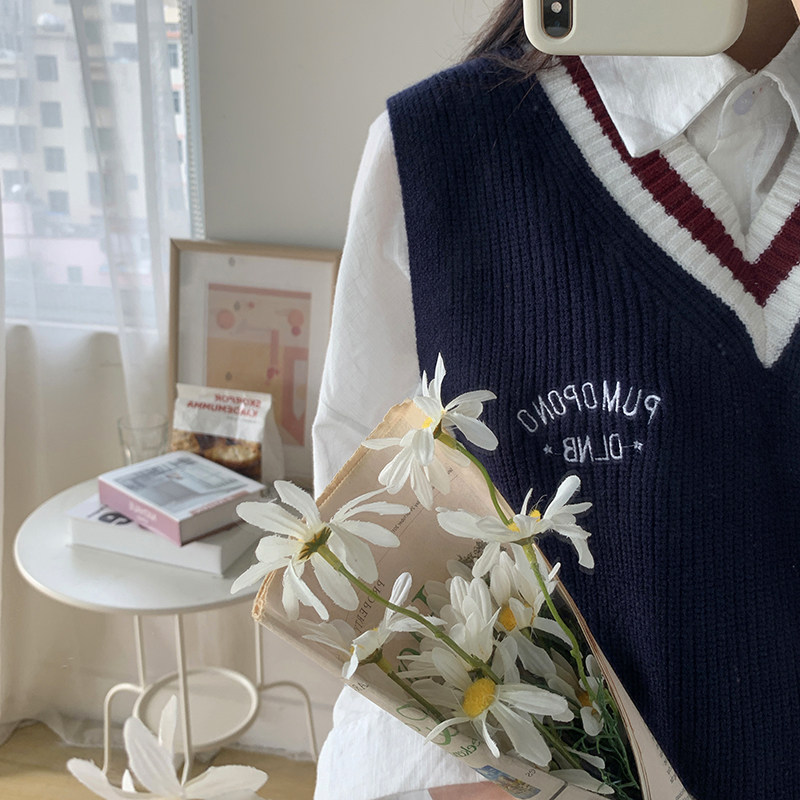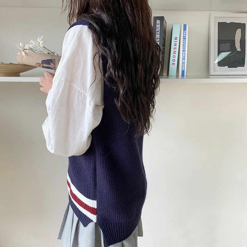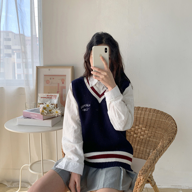 Blue (soft glutinous design sensation small crowdsourced chic milk ensemble wearing a hitch winter) white shirt (winter ladies' regular pure-coloured little lady) (blue vest white shirt)