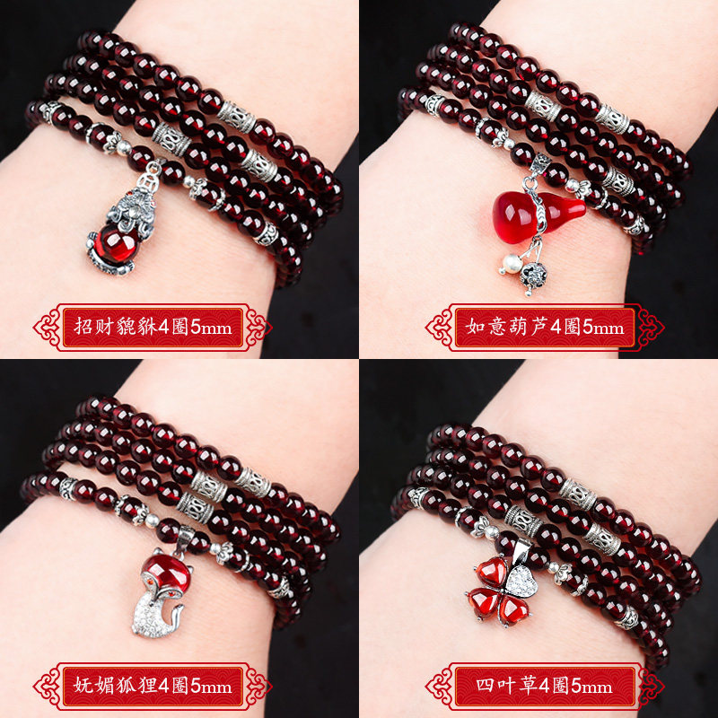 Garnet hand chain female natural 7A grade wine red crystal Pixiu transporter year of life zodiac Cow hand string gift